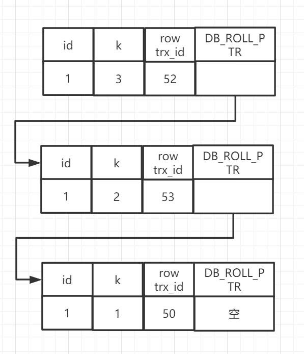 也就是说每一行数据实际上会存在多个版本,同时每个版本都有自己的row_trx_id。