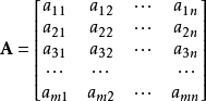由 m × n 个数aij排成的m行n列的数表称为m行n列的矩阵,简称m × n矩阵。记作: