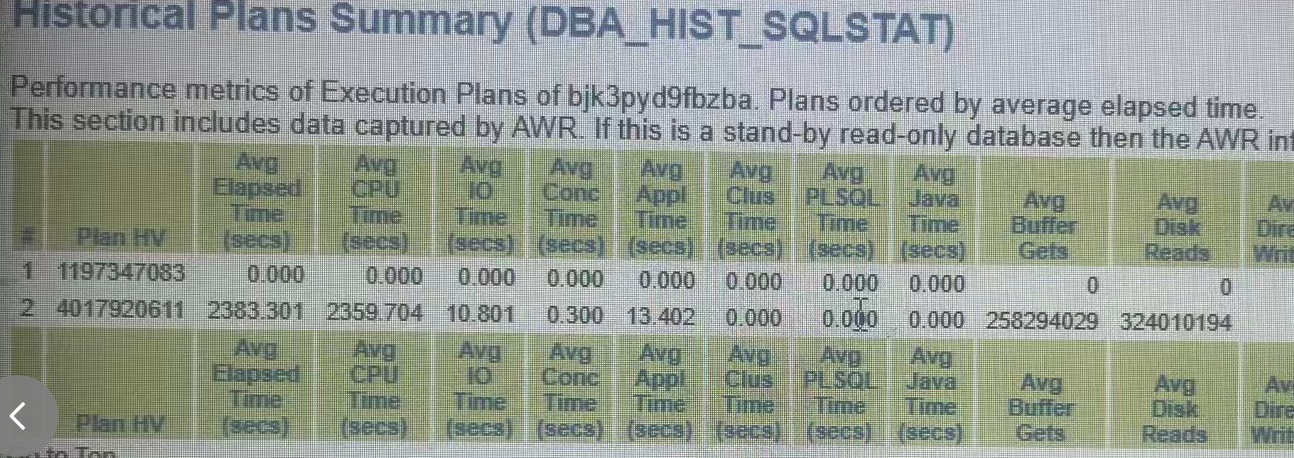 PLAN_HASH_VALUE AVG_ET_SECS
