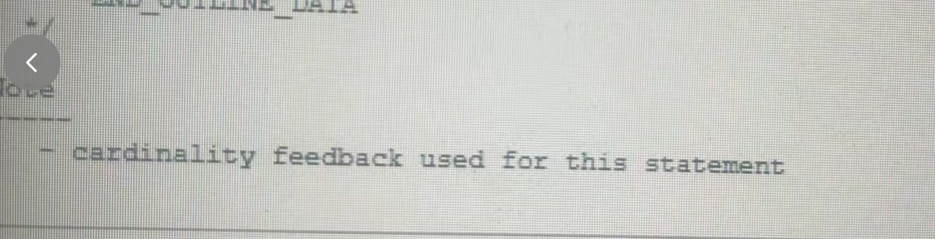 观察这个sql的执行计划 可以在执行计划的最后清楚的看到cardinality feedback used for this statement,一下就让我想起了之前曾经遇到过的一个案例,几乎一模一样。