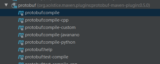<plugin> <groupId>org.xolstice.maven.plugins</groupId> <artifactId>protobuf-maven-plugin</artifactId> <version>0.5.0</version> <configuration> <protocArtifact> com.google.protobuf:protoc:${protobuf.version}:exe:${os.detected.classifier} </protocArtifact> <pluginId>grpc-java</pluginId> <pluginArtifact> io.grpc:protoc-gen-grpc-java:${grpc.version}:exe:${os.detected.classifier} </pluginArtifact> </configuration> <executions> <execution> <goals> <goal>compile</goal> </goals> </execution> </executions></plugin>