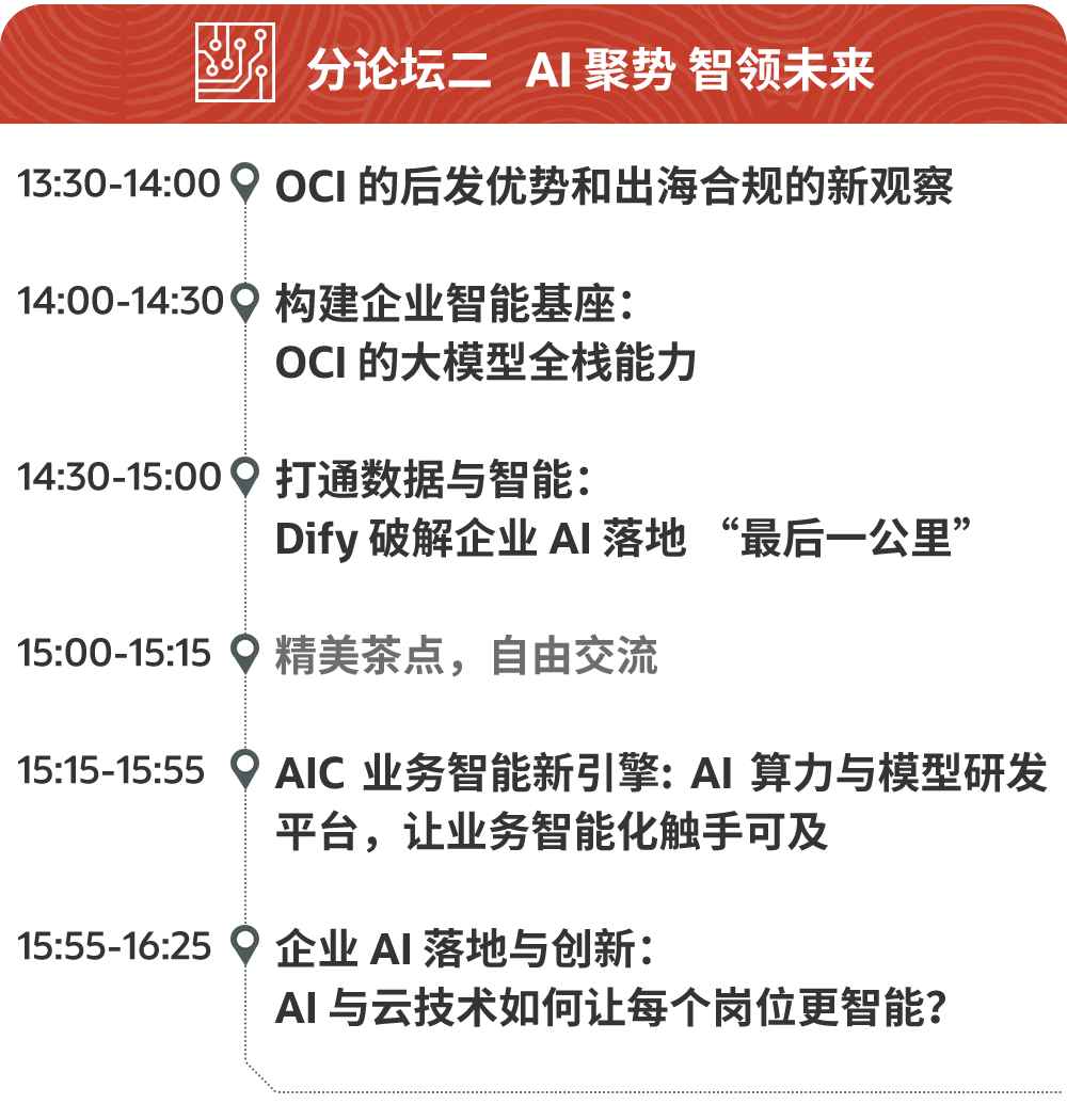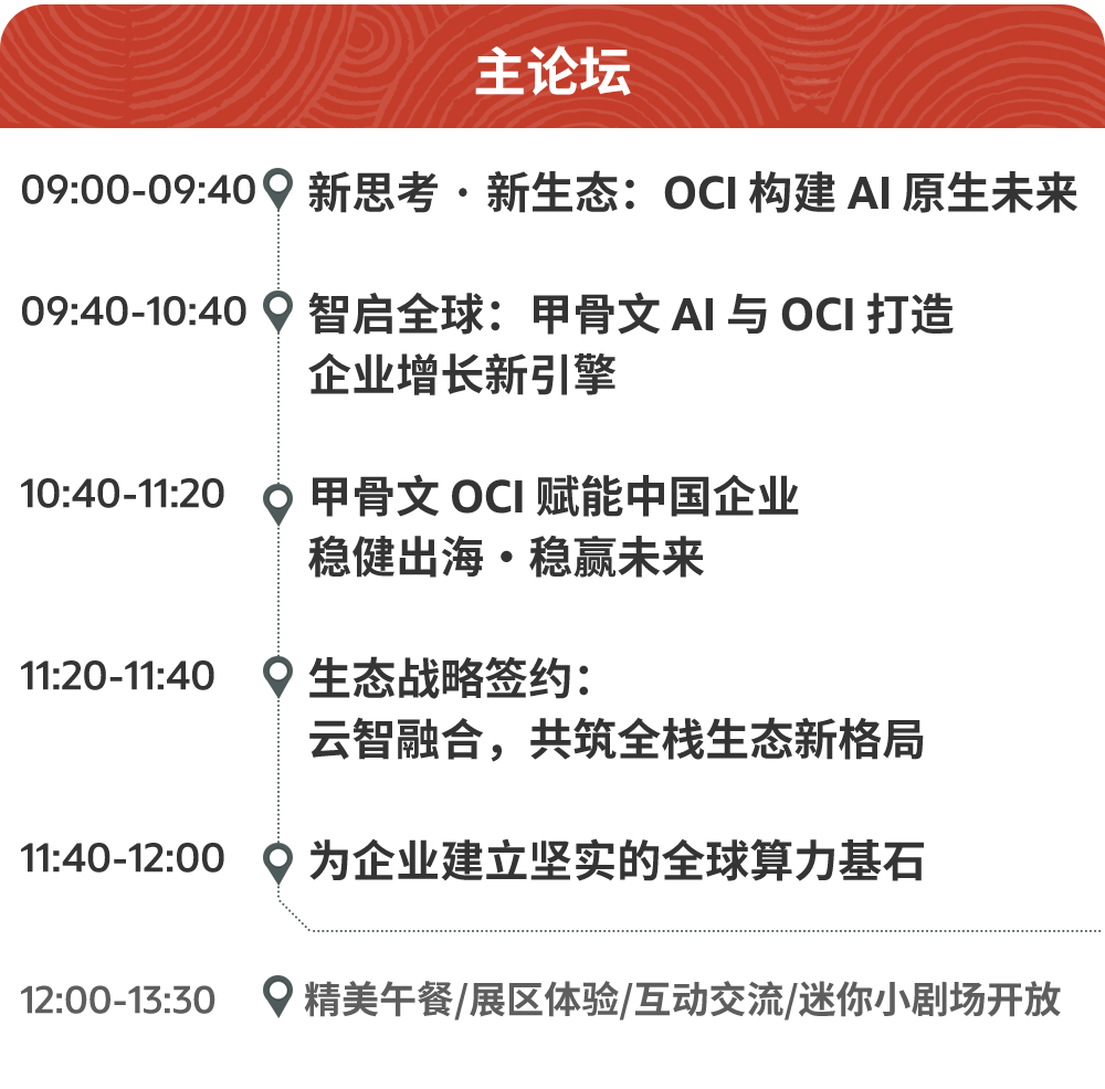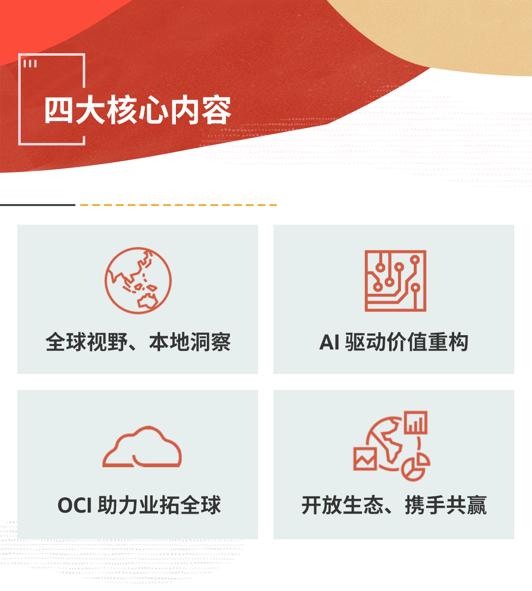 与 AI 和 OCI 云技术领域行业大咖、技术专家、生态伙伴面对面深度对话,碰撞前沿思想,链接价值共生的未来合作