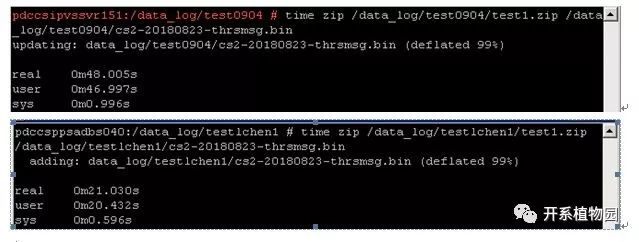 3)由于生产服务器不能随意用于测试,于是从库房中搬出了2台不同批次,同样型号的新老设备进行对比测试。发现即便均为新服务器,在使用ZIP命令压缩时也会表现出超过2倍性能差异: