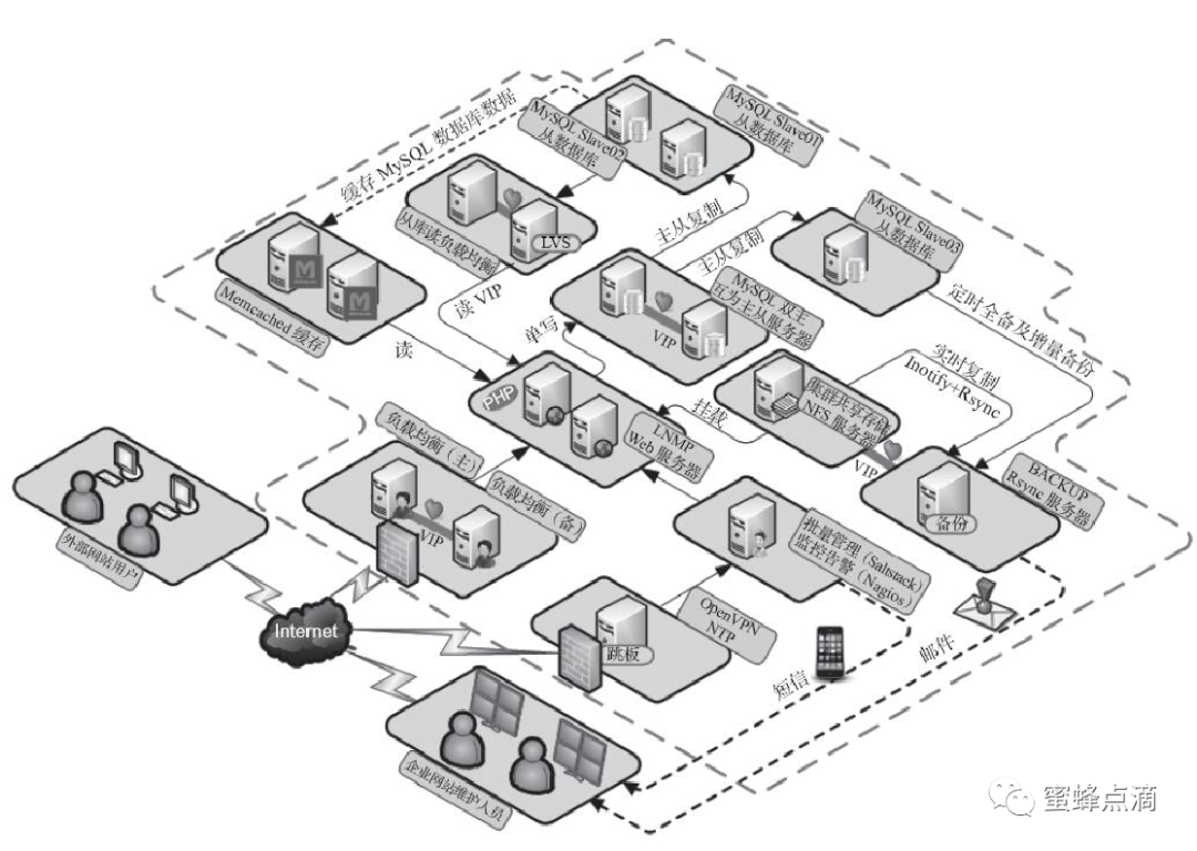 再后面是应用服务器,如果是数据库和存储的负载均衡和高可用,建议选择LVS+Heartbeat,LVS支持TCP转发且DR模式效率很高,Heartbeat可以配合DRBD,不但可以进行VIP的切换,还可以支持块设备级别的数据同步(DRBD),以及资源服务的管理。