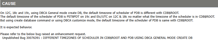 因此,建议所有 Oracle CDB 用户检查 PDB 的 Scheduler 时区设置,防患于未然。