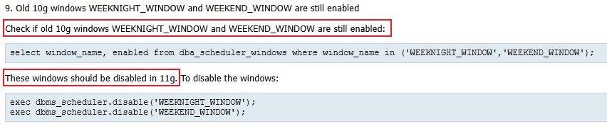 -- 禁用 10g 版本的 WEEKEND 和 WEEKNIGHT 窗口