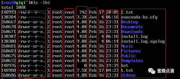 文件的大小 时间 类型 权限 属主 索引节点 文件的唯一标识。