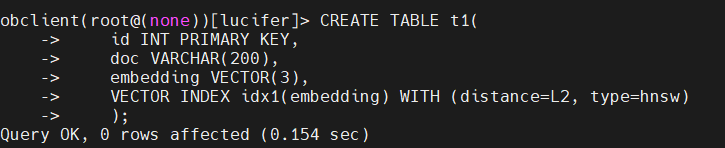 obclient(root@(none))[lucifer]> CREATE TABLE t1(