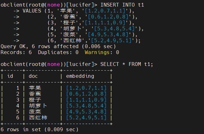 obclient(root@(none))[lucifer]> INSERT INTO t1