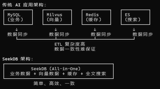 OceanBase 团队近期开源的seekdb,正是瞄准这一痛点,尝试从架构层面提供一体化解决方案。
