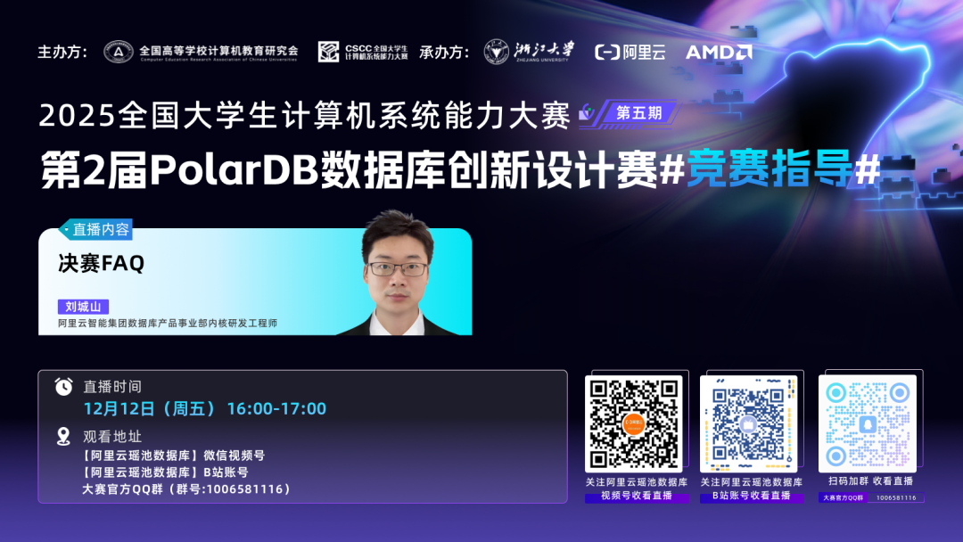观看回放:官方QQ群(1006581116)、B站账号「阿里云瑶池数据库」、「阿里云数据库开源」