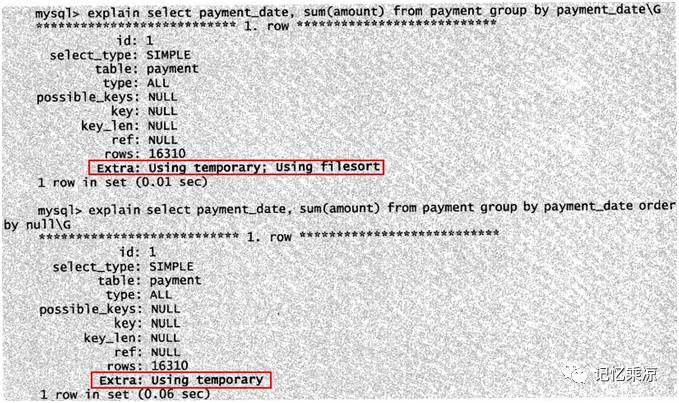 ③如果想要避免排序结果的消耗,可以指定 ORDER BY NULL 禁止排序;