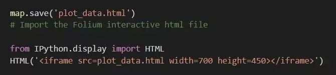 该图的输出实际上将保存为交互式的html文件。因此,我们需要做的是保存它并将其读回到笔记本中,以便在地图上与它进行交互。