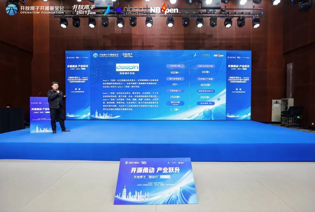 本次活动中,统信软件旗下 deepin(深度)社区高级运营总监蔡健发表主题演讲——《根植开源沃土:deepin 社区生态与宁波产业数字化的双向赋能实践》: