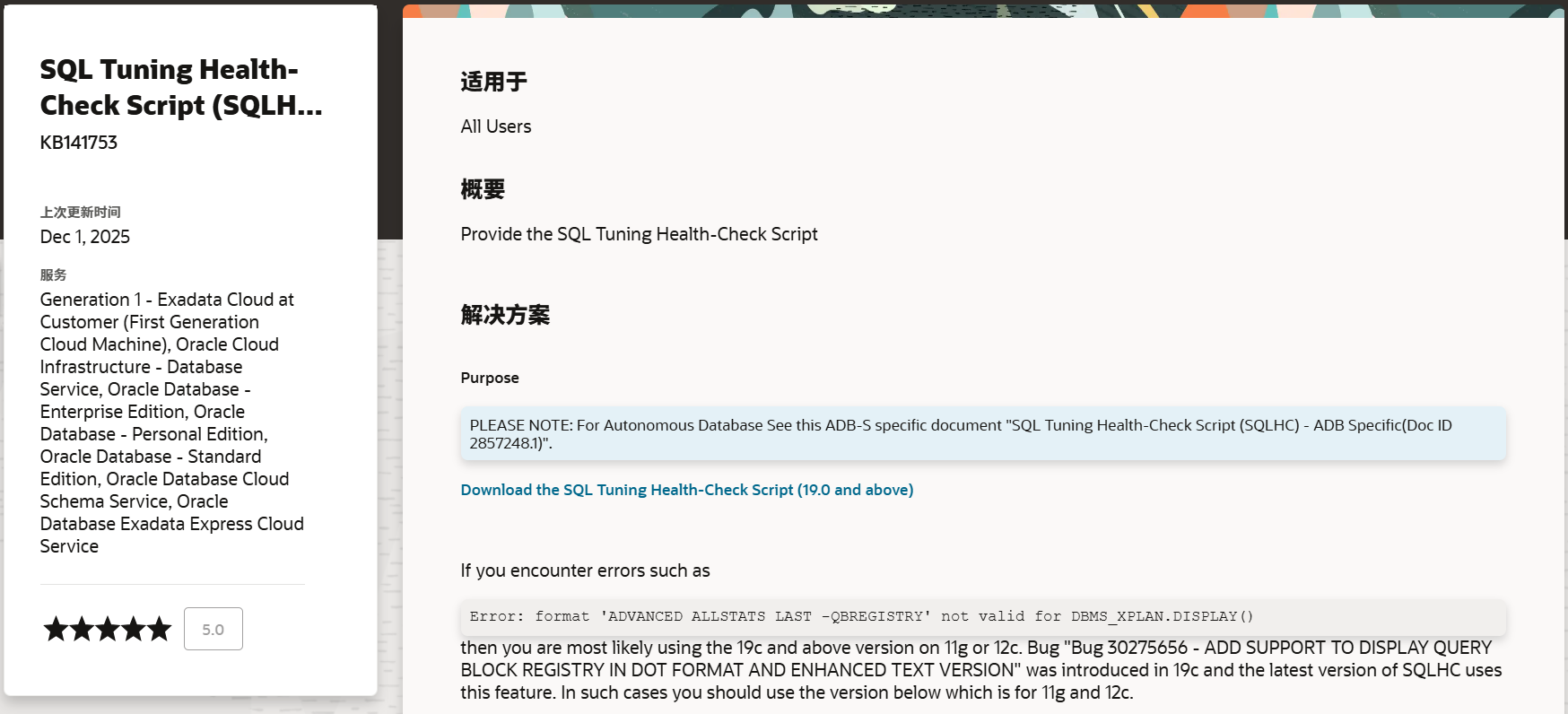 - (1366133.1) SQL Tuning Health-Check Script (SQLHC) Download, Guidelines and Requirements