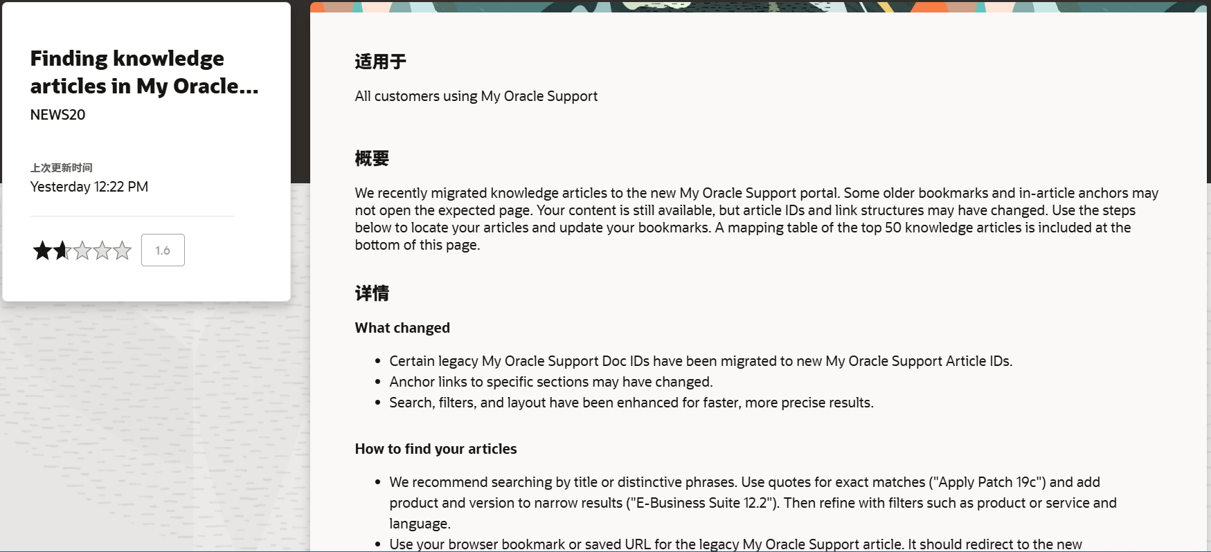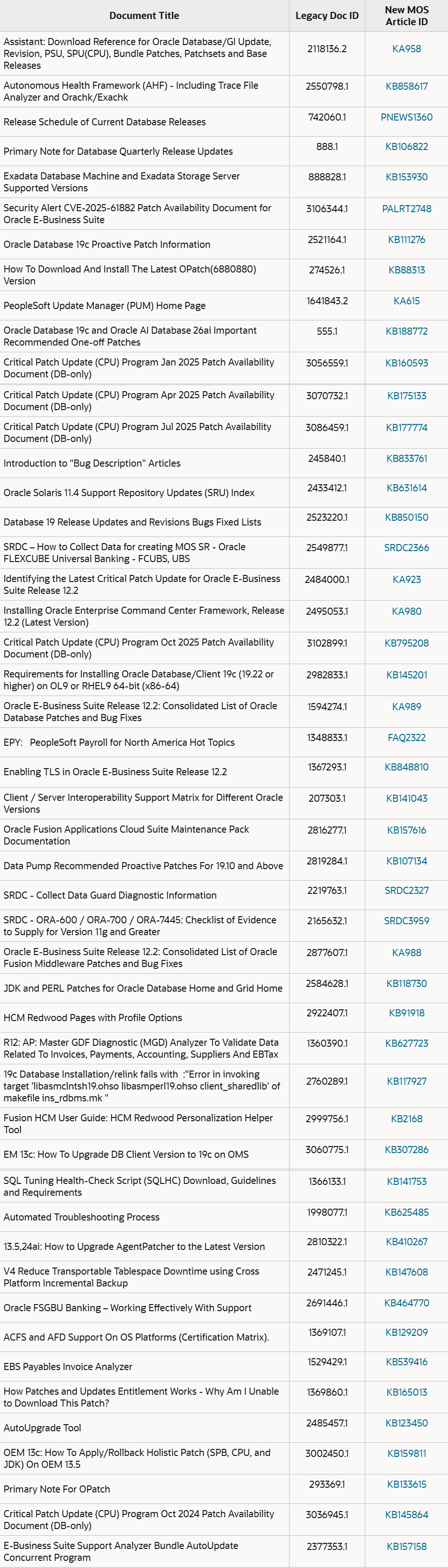 顾名思义就是教你如何在新版 MOS 找到以前的文档,让你搜 DocID,搜索关键字等等巴拉巴拉说了一通,最后又列出了最受欢迎的 50 篇 MOS 文档在新版的链接以及对应关系。