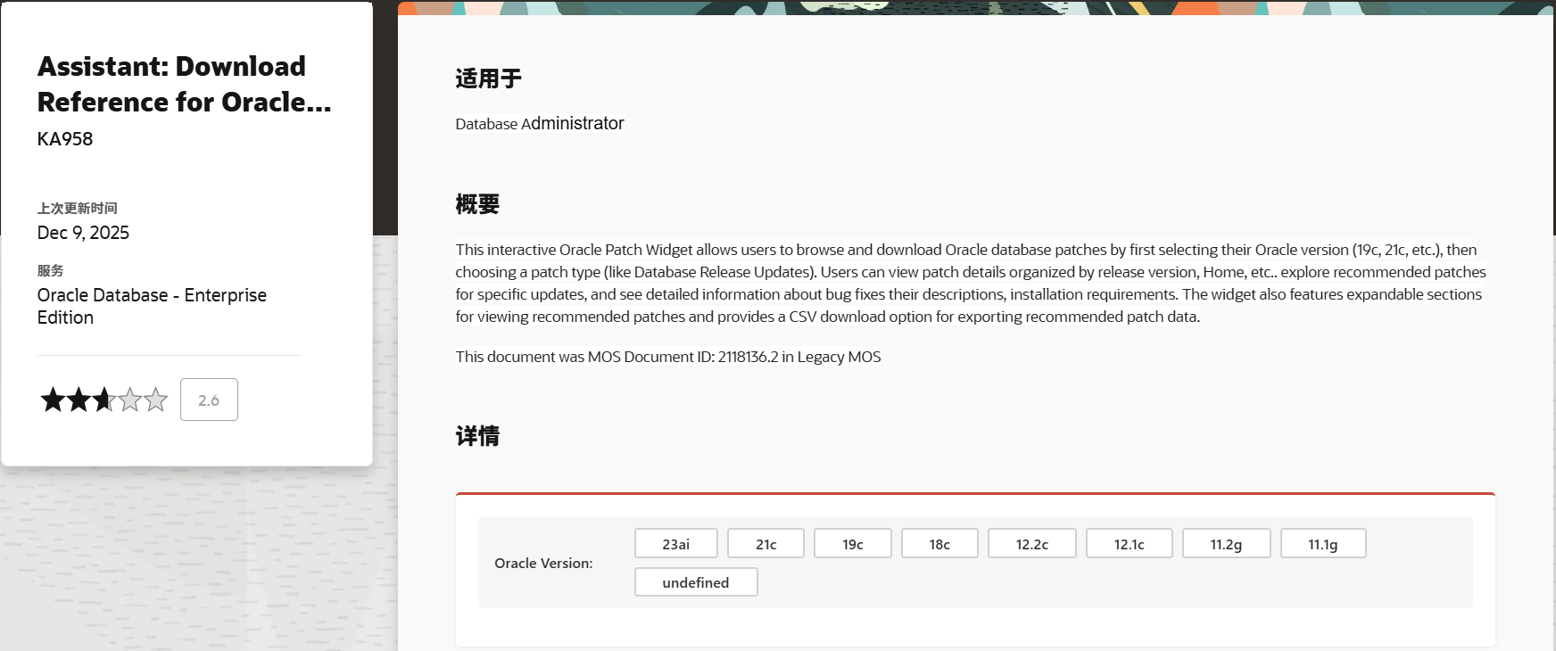 针对这个问题,Oracle 应该也意识到了,所以做了一些补救措施,昨天在 MOS 首页发布了一篇新的 MOS 文档: