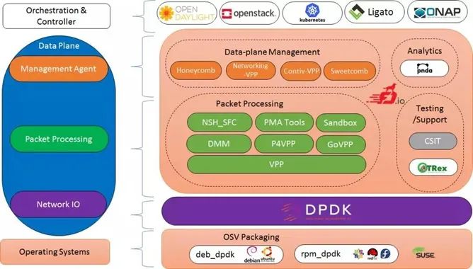 促进基于软件的数据包处理的创新,以创建适用于许多架构(x86、ARM、 PowerPC)和部署环境(裸机、VM、容器)。