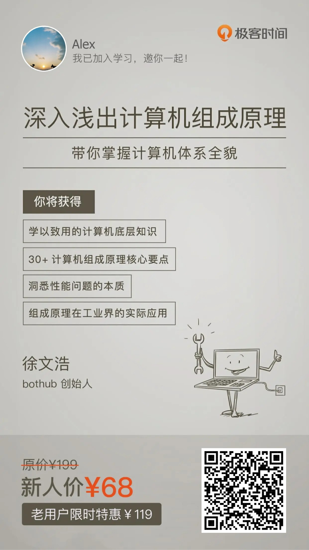 在学习操作系统的过程中,很多同学发现了另一个专栏《深入浅出计算机组成原理》,作者是 bothub 创始人「徐文浩」,非常擅长讲解底层知识,有趣不枯燥。这个专栏我也是和操作系统一起看的,十分硬核,建议大家搭配着使用!