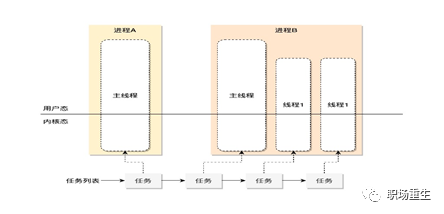 在linux系统下,无论是进程,还是线程,到了内核里面,我们统一都叫任务(Task),由一个统一的结构 task_struct 进行管理。一个进程由于其运行空间的不同,从而有内核线程和用户进程的区分。内核线程运行在内核空间,之所以称之为线程是因为它没有虚拟地址空间,只能访问内核的代码和数据; 而用户进程则运行在用户空间, 不能直接访问内核的数据但是可以通过中断,系统调用等方式从用户态陷入内核态,但是内核态只是进程的一种状态, 与内核线程有本质区别,用户进程运行在用户空间上,而一些通过共享资源实现的一组进程我们称之为线程组。Linux下内核其实本质上没有线程的概念,Linux下线程其实上是与其他进程共享某些资源的进程而已。但是我们习惯上还是称它们为线程或者轻量级进程。