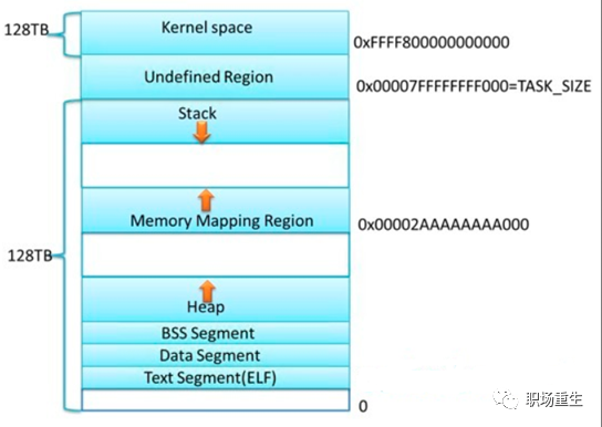 在32位系统中,Linux会留1G空间给内核,用户进程是无法访问的,用来存放进程相关数据和内存数据,内核代码等;在64位系统里面,Linux会采用最低48位来表示虚拟内存,这可通过 /proc/cpuinfo 来查看address sizes :