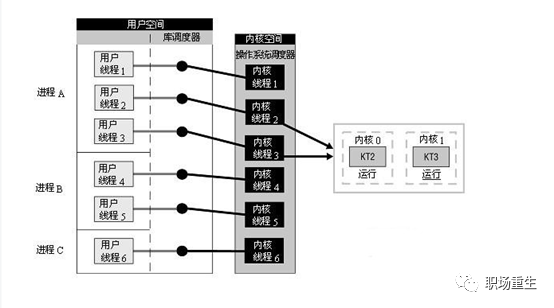 (2)处理器竞争:因与特定内核线程关联,因此可以在全系统范围内竞争处理器资源。