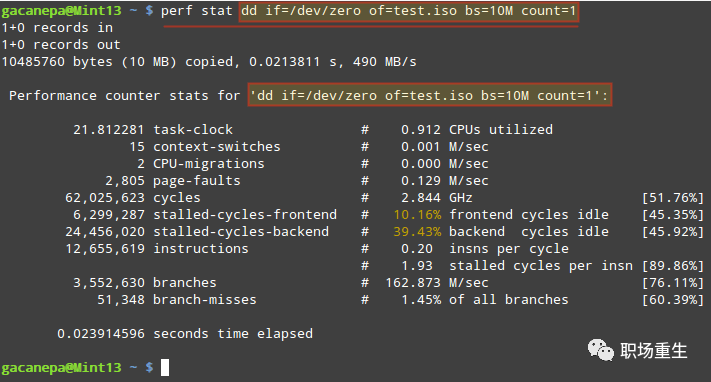 perf stat 采集程序运行事件,用于分析指定程序的性能概况:
