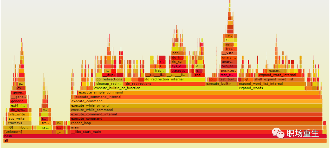 可以显示堆栈路径上CPU消耗,找到耗时的最多的函数;