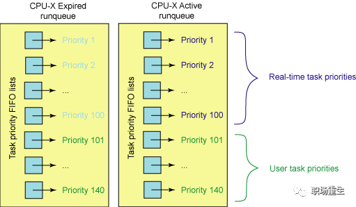 (3)分区类(Partitioned ):每个调度器只管自己的那个CPU,系统有多少个CPU就有多少个调度器实体。