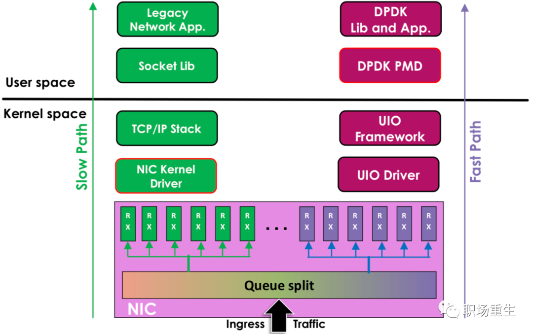 Intel DPDK全称Intel Data Plane Development Kit,是intel提供的数据平面开发工具集,为Intel architecture(IA)处理器架构下用户空间高效的数据包处理提供库函数和驱动的支持,它不同于Linux系统以通用性设计为目的,而是专注于网络应用中数据包的高性能处理,适合高性能网关(IO需求大)场景;