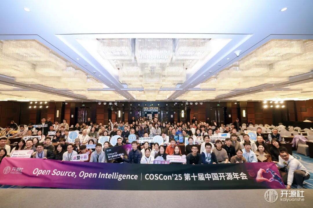 2025 年 12 月 6–7 日,第十届中国开源年会 COSCon’25 在北京市海淀区丽亭华苑酒店圆满落幕。作为中国最具影响力的开源盛会之一,COSCon 自 2015 年创办以来已经走过十年历程。本届大会以“众智开源 Open Source,Open Intelligence”为主题,聚焦开源与人工智能深度融合带来的技术变革、产业趋势与生态协同,吸引了国内外众多社区、企业与开发者参与。