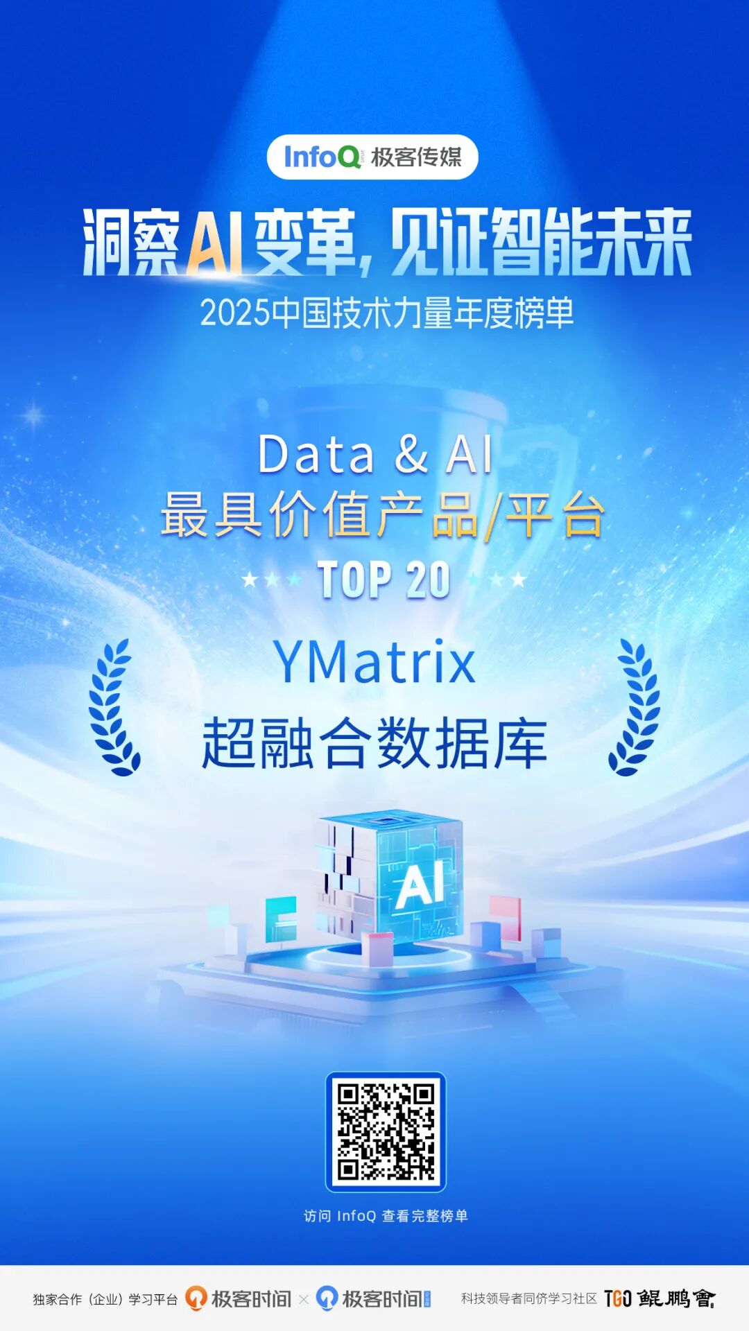 由 InfoQ 极客传媒发起的「中国技术力量年度榜单」,以“洞察 AI 变革,见证智能未来”为主题,围绕 AI 基础设施、工程与部署、智能体生产力、行业应用、数据智能、AI Coding、具身智能与开源等八大方向遴选年度代表性成果,并设置包含 Data & AI 最具价值产品/平台在内的八个榜单类别。