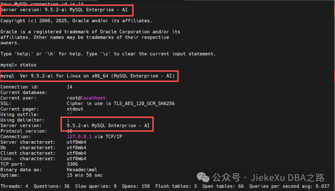 [root@JiekeXu soft]# rpm -ivh mysql-ai-server-9.5.2-1.2.el8.x86_64.rpm