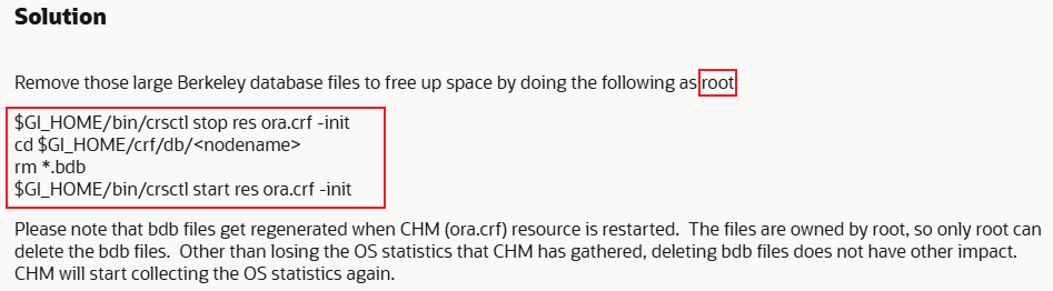 以上内容取自 MOS 文档:[KB145337] Oracle Cluster Health Monitor (CHM) using large amount of space (more than default)。