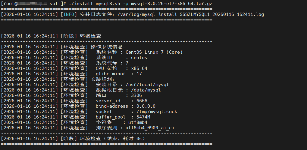 目前本脚本用于在 Linux 主机上通过 MySQL 二进制 tar 包快速完成 MySQL 8.0 的安装部署,并配套基础环境优化、残留清理、日志记录和自动备份能力。脚本运行过程中会将输出同时打印到屏幕并写入日志文件,便于排查问题与留痕。