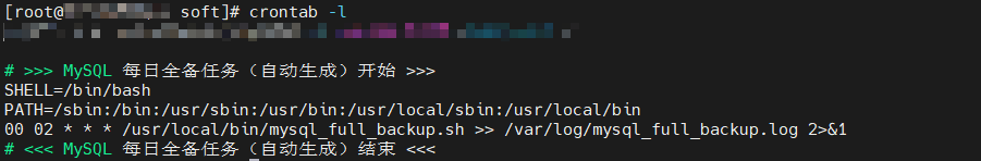 /root/.my.cnf。 - 备份与定时任务:生成备份脚本并安装 crontab 定时任务。