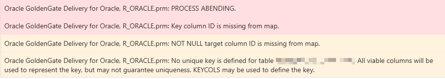 今天在处理一套 MySQL 8 同步到 Oracle 19C 的 OGG 时,发现复制进程突然不跑了。Replicat 一启动就退出,日志里反复刷同一个错误:OGG-00918 Key column ID is missing from map。第一反应并不是去翻 OGG 文档,而是先回忆最近有没有动过表结构,因为这种 key column 相关的报错,十有八九和表变更脱不开关系。
