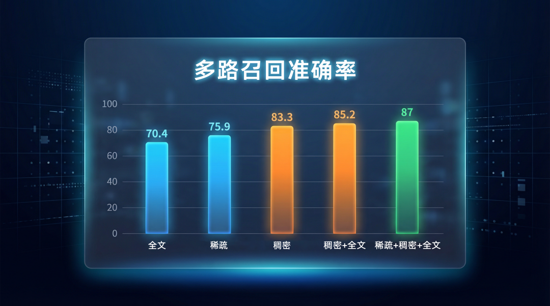 这种“多路召回,统一排序”的模式,让 OceanBase 能够先通过关系、标量数据进行高效过滤,大幅缩小检索范围,再在小范围内进行精准的向量或全文搜索。每一路检索都会产出部分结果,最终将各路结果融合,并经过全局重排序(Rerank),才能为大模型输出其真正需要的精准结果。