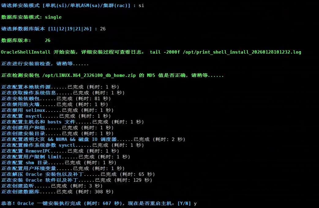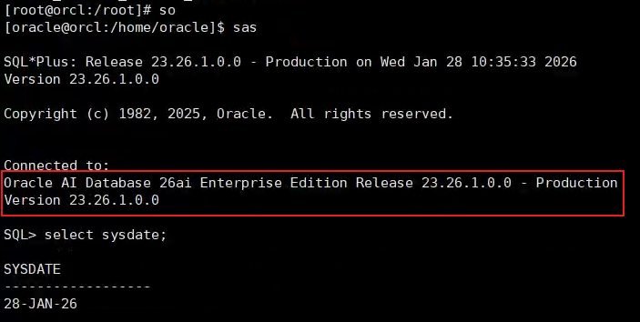 顺便还适配了一下 Oracle 一键安装脚本,其实早已在去年我就已经把 23ai 版本适配完了,但是因为 Oracle 一直没有发布本地版,后面版本号又改成了 26ai,无奈只能再重新适配一下了,花了 5 分钟改了一下版本号完成适配。
