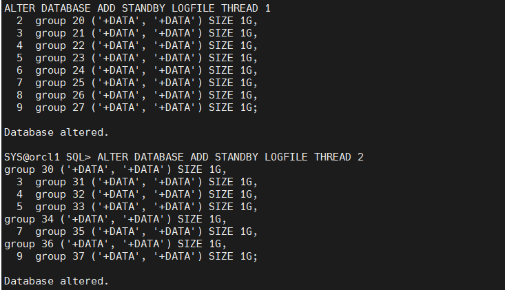 ALTER DATABASE ADD STANDBY LOGFILE THREAD 1