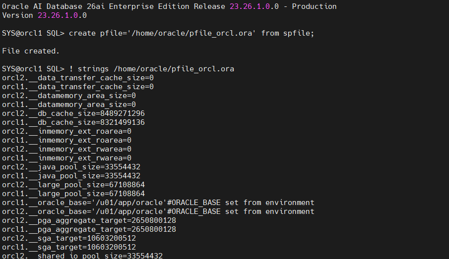 CREATE PFILE='/home/oracle/pfile_orcl.ora' FROM SPFILE;