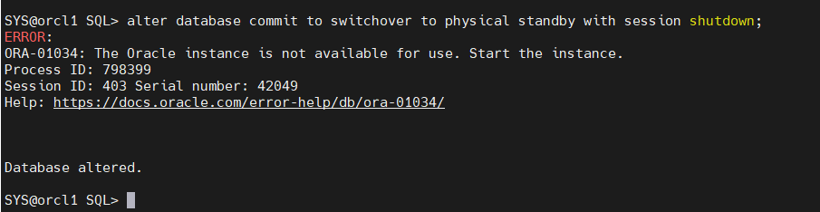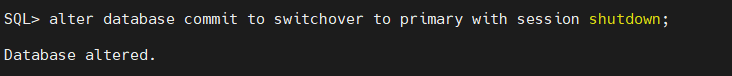 SQL> alter database commit to switchover to physical standby with session shutdown;