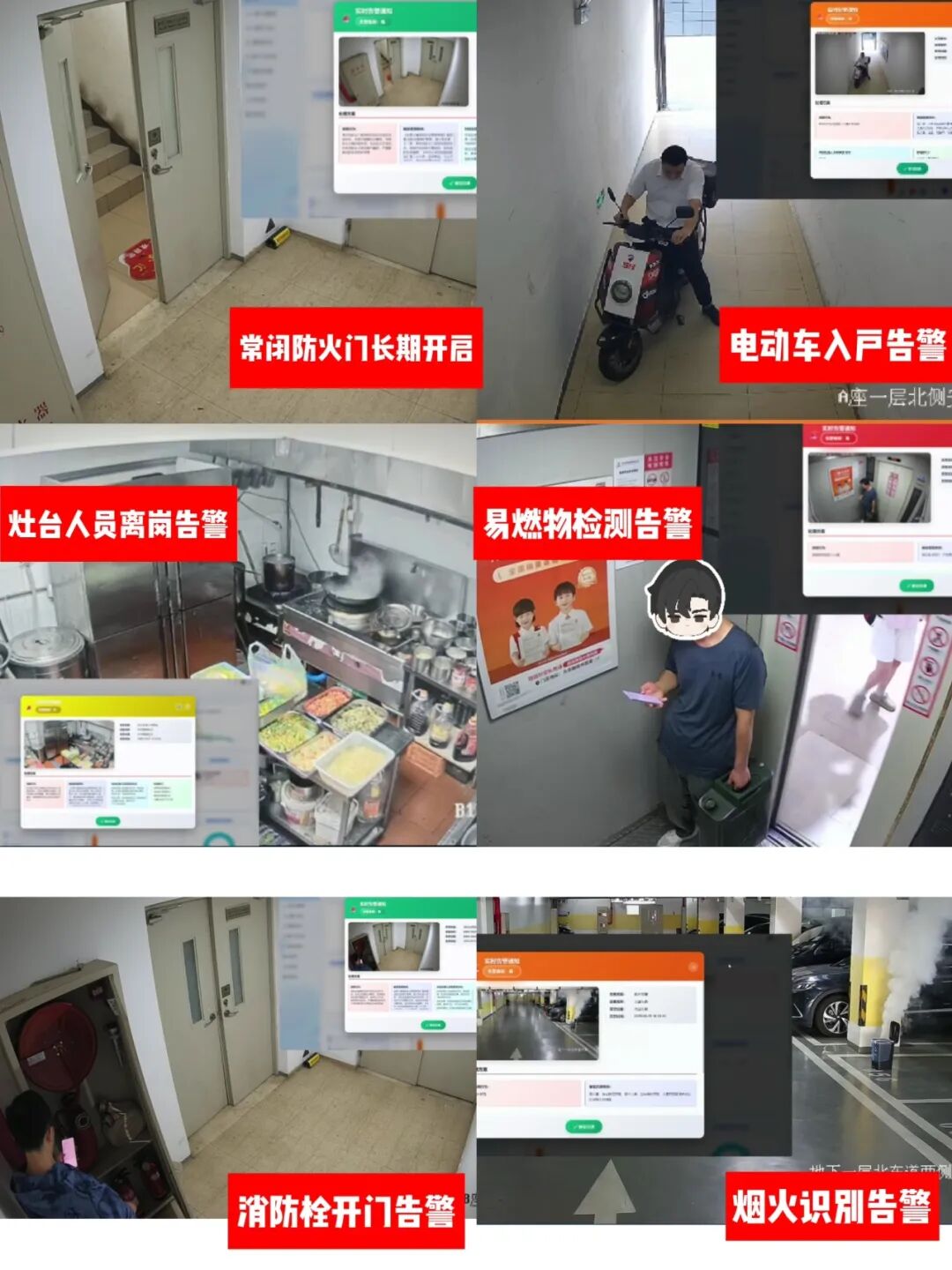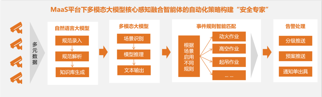 复杂场景适配:多模态预警系统基于“视频视觉识别+传感器数据验证+规则引擎匹配”的三重校验机制,实现精准识别。在某工业园区项目中,融合摄像头视觉识别(火焰、烟雾、危险物、违规行为等)、传感器数据(温度、烟雾浓度等)、消防台账文本,精准区分焊接火花与火灾、粉尘与烟雾等,复杂场景识别准确率达到90%+。