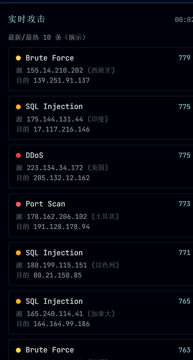 FastAPI:Python 异步框架,写接口快Elasticsearch 8.x:聚合查询,拿 TOP50 攻击对python-dotenv:环境变量管理
