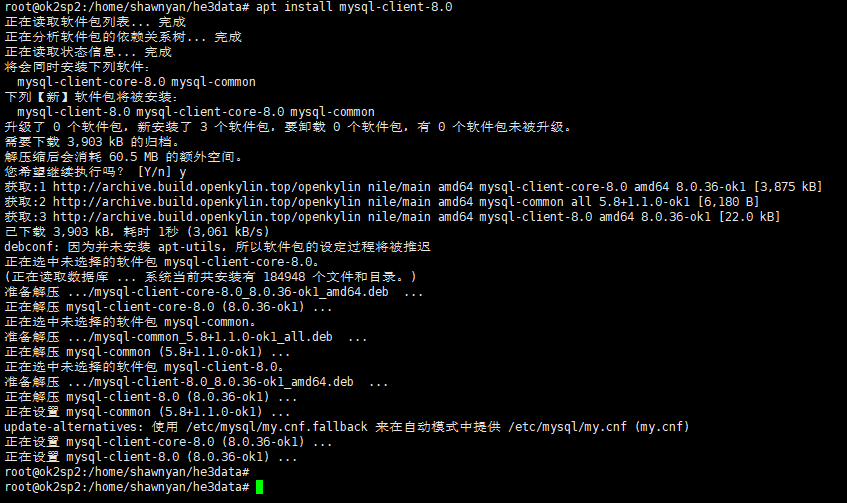 在 openKylin 上安装一个 MySQL 客户端。