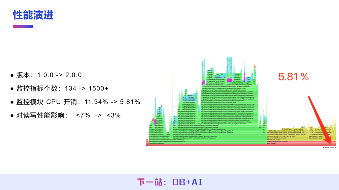 监控模块的 CPU 开销从 11.34% 降至 5.81%,对 IoTDB 读写性能的影响从低于 7% 降至低于 3%。