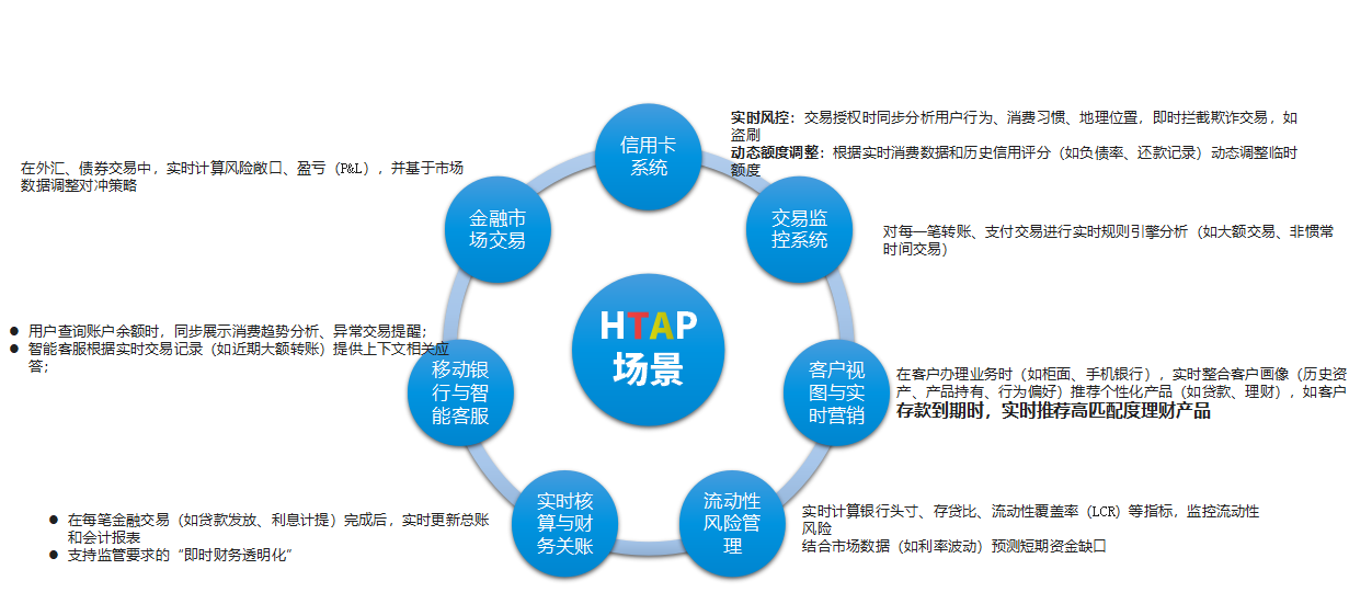 HTAP在行业的适用性取决于实时性需求与业务复杂性的平衡。在金融行业,对于信用卡风控、实时营销、流动性管理等场景,HTAP可大幅提升效率;但对于超高频交易(如支付清算)或超大规模历史分析(如监管报送),仍需结合专用系统(如OLTP数据库+数据湖)。银行在落地时应优先选择业务价值高、数据时效敏感的场景试点。