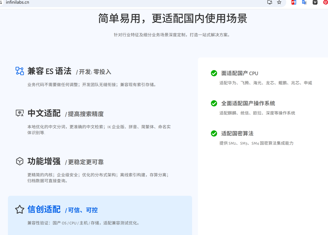这个细分市场就是:有 Elasticsearch 技术积累、面临信创合规压力、需要快速完成替代而不大幅改造代码的中国企业。
