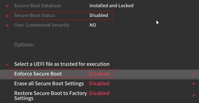 开启security boot后,主板会验证引导程序及操作系统 ,若没有用对应的私钥进行签名,则无法通过主板上内置公钥的认证。