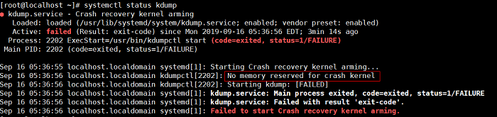 kdump服务需要系统预留一段内存用于运行kdump内核,而当前系统没有为kdump服务预留内存,所以无法运行kdump服务。